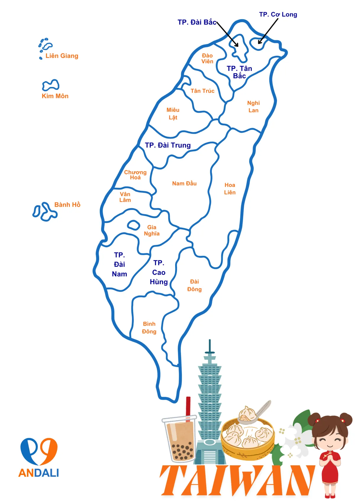 - Đài Loan là một hòn đảo nằm tại khu vực Đông Á. Quốc gia này nổi tiếng với nền kinh tế phát triển, cảnh quan tươi đẹp cùng nền văn hóa độc đáo, đậm đà bản sắc dân tộc.