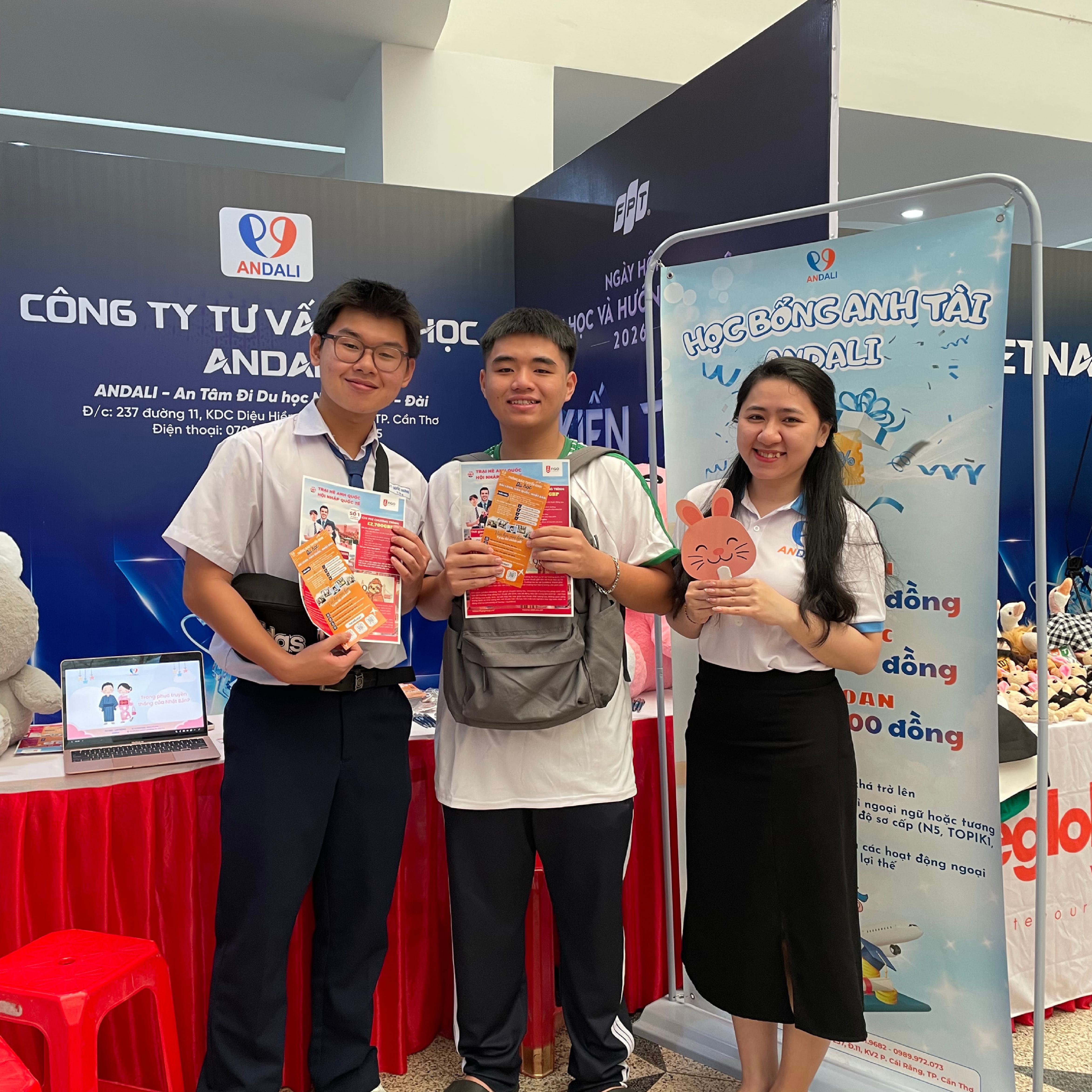 ANDALI – thương hiệu của Công ty TNHH Dali’s, là đơn vị tư vấn du học và lao động uy tín tại Cần Thơ, đồng hành cùng người trẻ trên hành trình vươn mình ra quốc tế. Chúng tôi không chỉ giúp bạn tìm cơ hội học tập và làm việc tại Nhật Bản, Hàn Quốc, Đài Loan, mà còn giúp bạn hiểu mình – chọn đúng – hành động đúng để tự chủ tương lai và tự do tài chính.